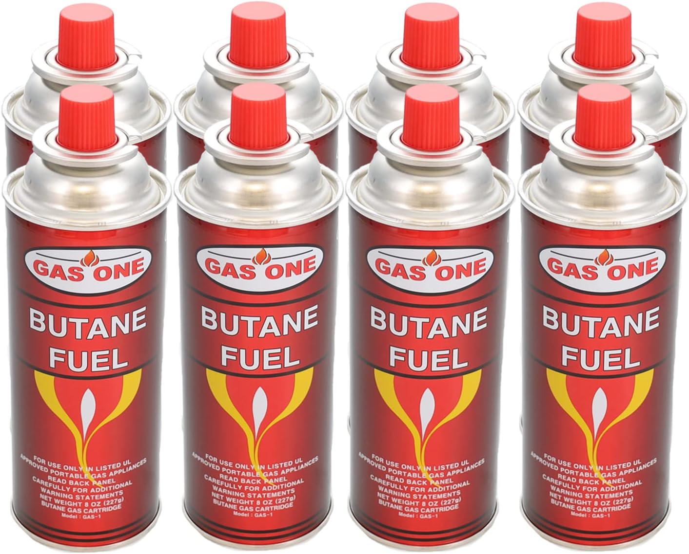 GasOne Butane Fuel 8oz Canister 8 Pack Gas One GasOne Butane Fuel 8oz Canister 8 Pack Gas One Product form 8 PACK Compatibility - All Portable Camping Stoves that uses 8oz Camping Fuel - Gas One Portable Stoves and Others... Read more $18.91 Incl. VAT Quantity Add to cart This item is a recurring or deferred purchase. By continuing, I agree to the cancellation policy and authorize you to charge my payment method at the prices, frequency and dates listed on this page until my order is fulfilled or I cancel, if permitted.